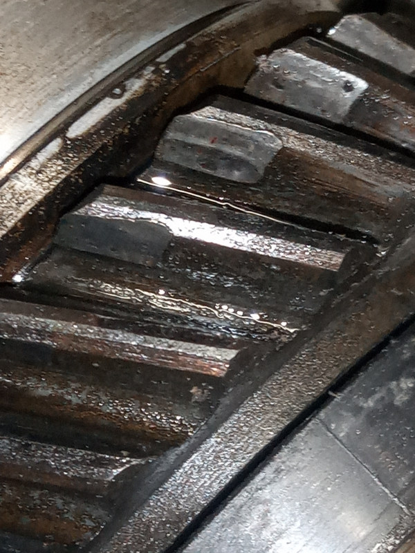 Photo de l'arbre à came, quelques dents sont abîmées côté rattrapage.