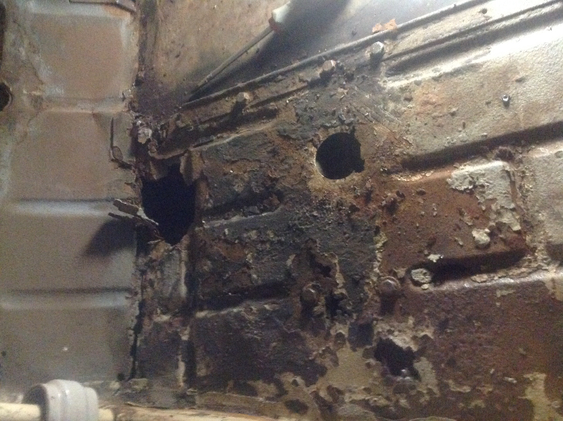 Sous la tôle tu va trouver les planchers latéraux et le plancher de pédales bien rouillés et percés.