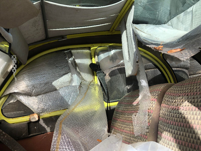 Pour l'instant on l'a désossée de l'intérieur car les planchers avaient pris l'eau, elle était malheureusement stockée dehors depuis quelques années. Sinon toujours à l'abri et ça se ressent, elle est en bon état global. Je vais changer la capote (vous comprendrez), les élastiques des banquettes et mousse, voir si les roues tiennent gonflées et changer la couleur des jantes (beurk) et essayer de faire péter le moteur qui normalement est bon, pour la passer au CT. Sinon je ne vais rien faire de spécial, elle est parfaite dans son jus :pouce:
