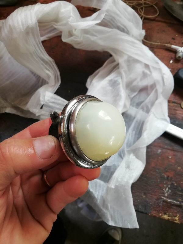 Le cabochon n’est pas en super état et le support pas nickel, mais bien remis en état il sera bien dans le ton de la Panama !