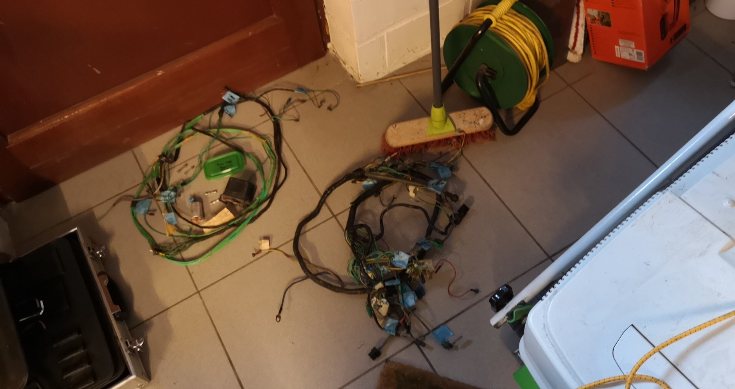 Beaucoup de "modifs" maison, de raccords et de connecteurs non-standard. Je vais tout remettre à plat et le remettre en conformité avec le schéma de la RTA. Le compteur vient d'une 2CV Club, donc pas de bouton feu de détresse (alors que le connecteur est derrière).