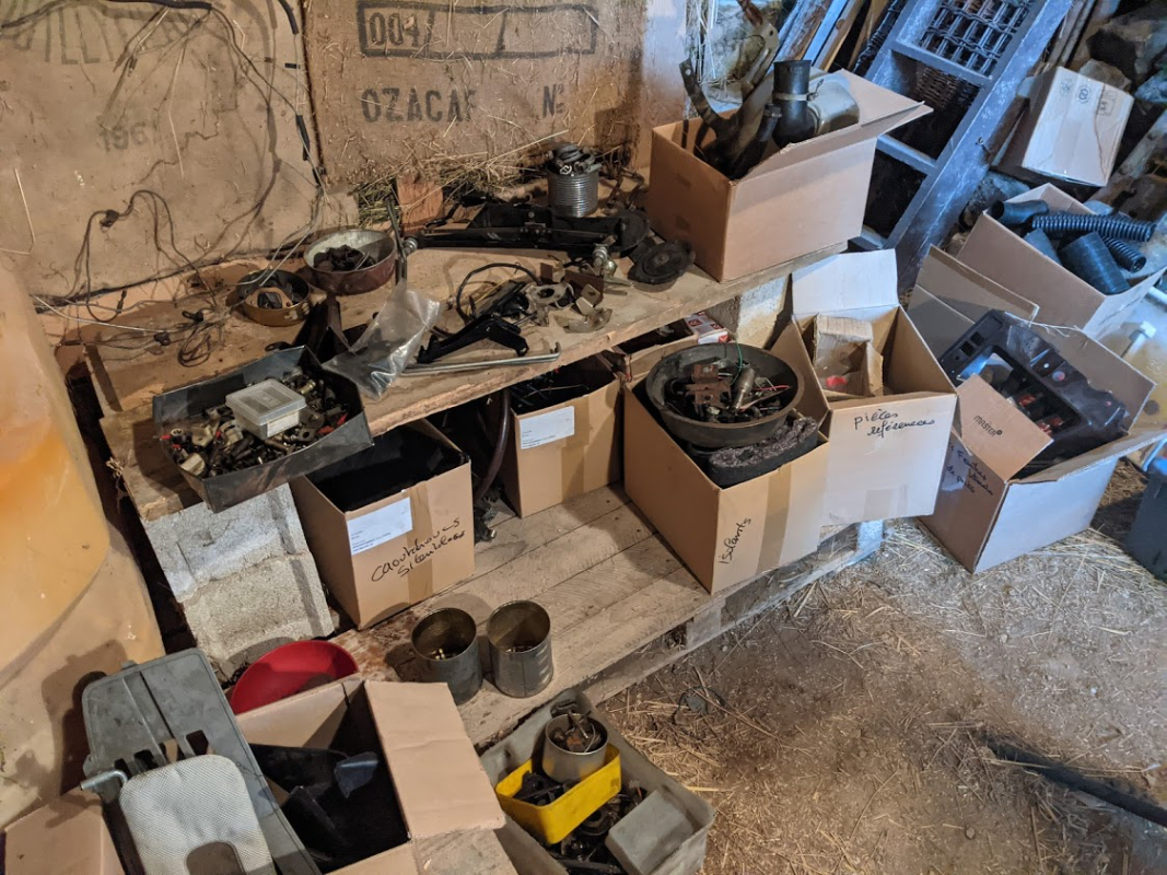 Sinon j'ai fais à peu près ce que vous m'avez conseillés. J'ai continué l'inventaire des pièces, et le constat est qu'il manque quelques trucs, mais pas tant que ça a priori ! Il manque par exemple la planche de bord, les fenêtres latérales et le silencieux secondaire. Ce ne sont que des pièces assez volumineuses, ce qui me laisse penser qu'elles ont été oubliées dans un coin au moment de la vente au garage qui l'avait avant nous !