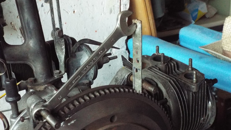 Pour le volant moteur, pas compliqué, tu dévisses les cinq vis qui le tiennent. Pas toujours commode parce que les têtes des vis sont peu épaisses. Il te faut une douille sans chanfrein si possible. Au remontage, en principe il faut mettre des vis neuves.