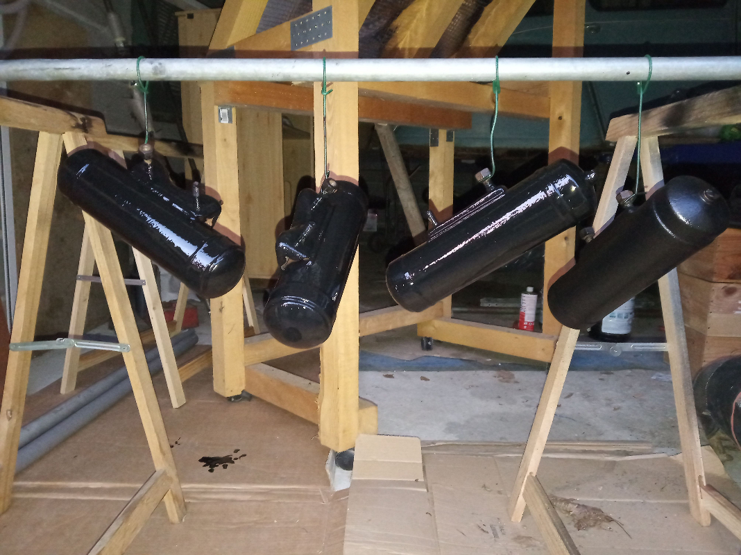 en effet le grand jour de la peinture de mes trains et pots de suspension c’était hier !
