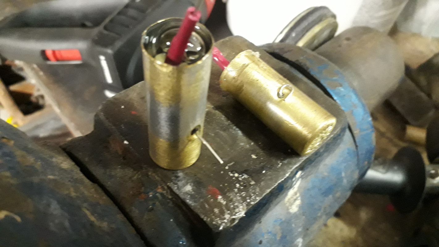 Le travail : Prendre un vieux condensateur, couper ou meuler le bord extérieur côté fil pour dégager tout l’intérieur. Bien nettoyer le tube vide.