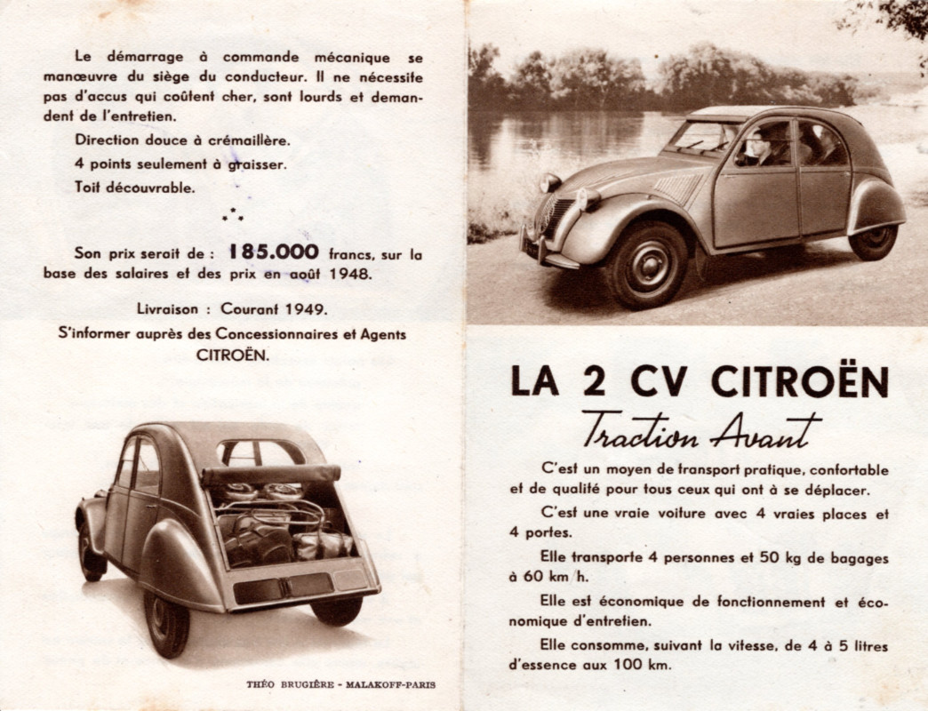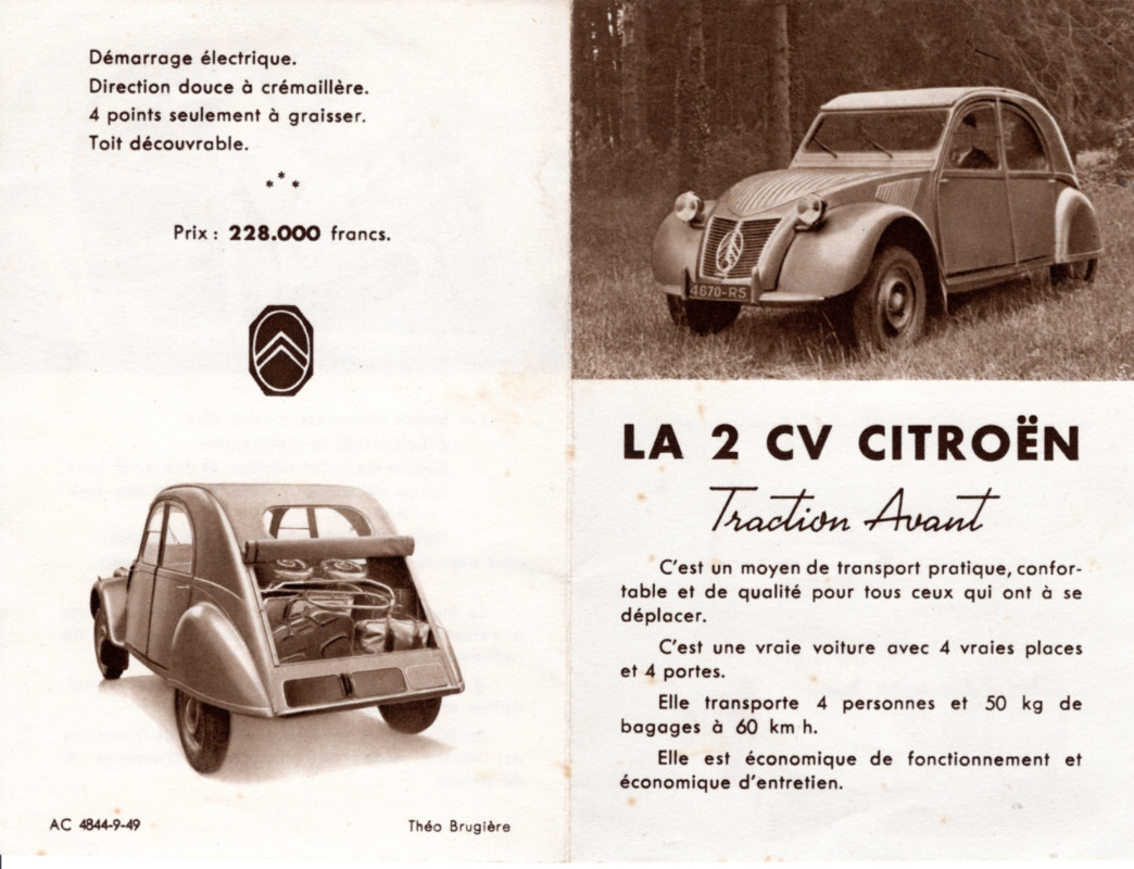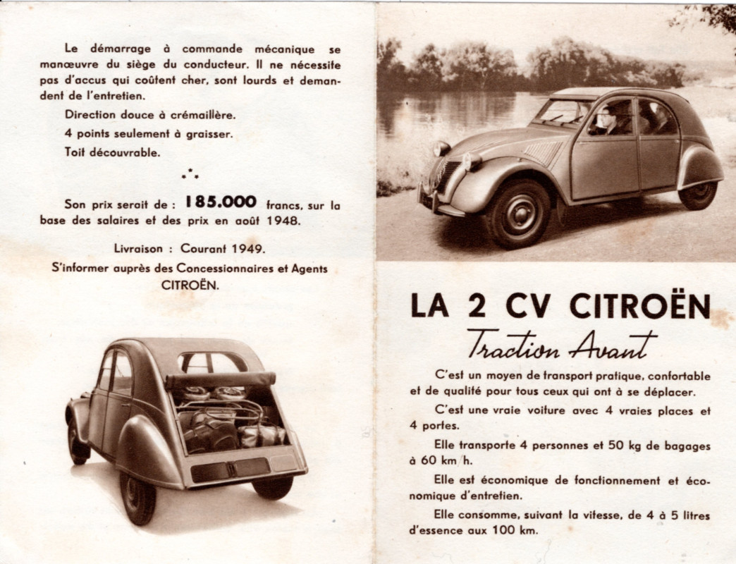 Voici les tout premiers documents publicitaires de la 2 CV.