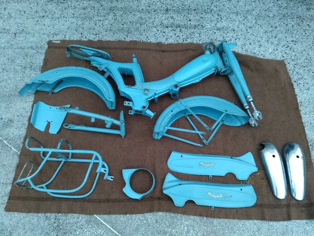 La mécanique est en bon état avec beaucoup d’éléments neufs: Chassis, freins, roues, batterie, maître cylindre, segmentation refaite je crois, durites ...