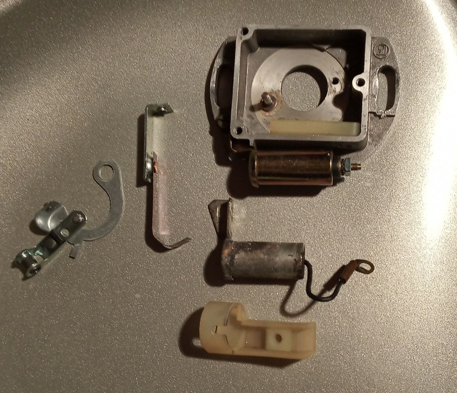 pour l'allumage j'ai repris un autre boitier 6 volts avec la vis sur le côté, et j'ai remonté mes pièces neuves dedans pour être d'origine.