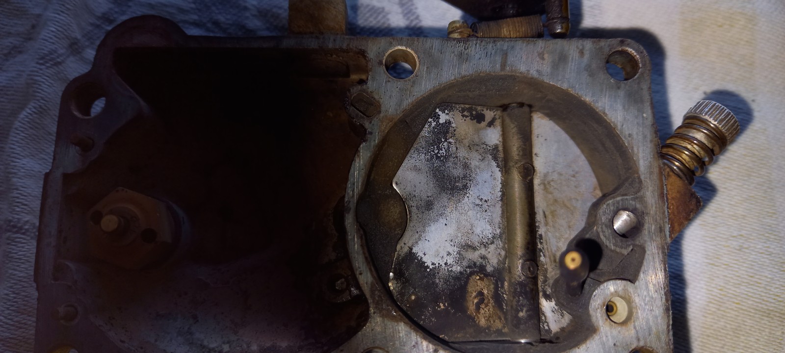 Je ne vois pas quelle est l'autre vis avec un ressort, qui est située sur le couvercle du carbu, si je vois bien, pas sur le corps. Et je n'ai pas de carbu sous la main non plus pour voir.
