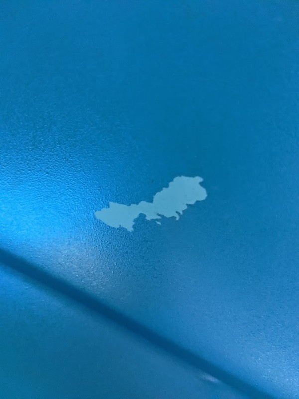J'ai pris une photo cet après midi pour que tu te rende compte de la différence de teinte entre ma deuche dans sa couleur actuelle (inconnue) et son bleu pétrel d'origine : Merci la peinture vite fait dans la benne