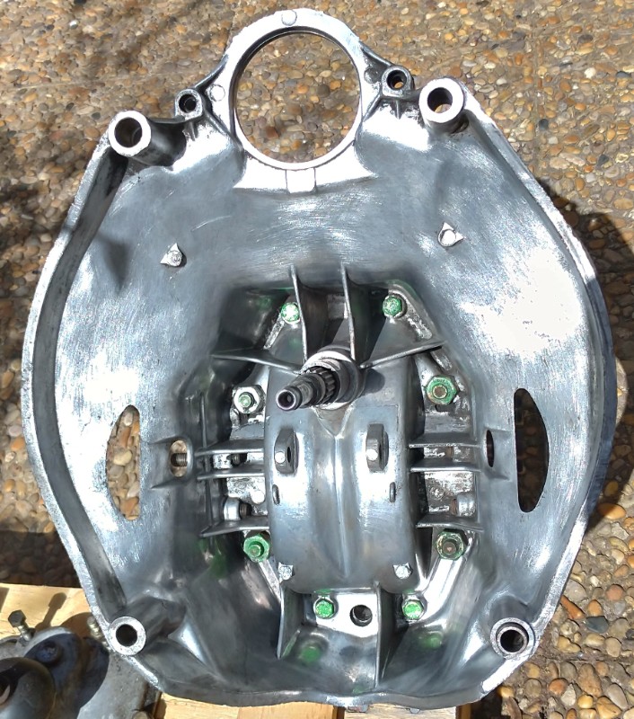 C'est aussi l'occasion de retirer les plateaux de support de frein à tambour (l'ancien proprio l'avait eu comme ça. Or il s'agit d'une boite à disque, et pour cause il y a le taraudage pour les étriers sur le carter de boite).