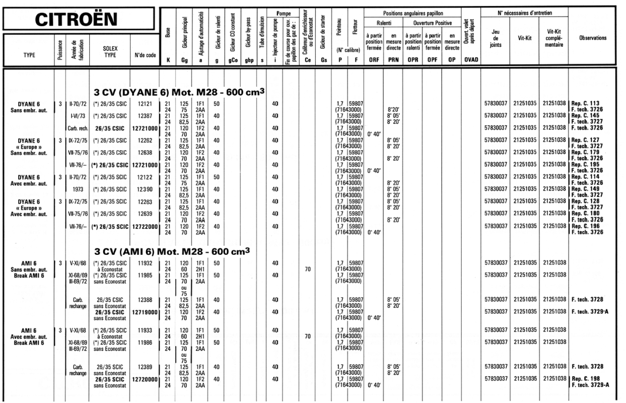 D'ailleurs, existe-t-il un tableau des carbus en fonction des modèles 2cv, genre le 24/28 sur telle année, le 25/35 sur telle autre, etc... ?