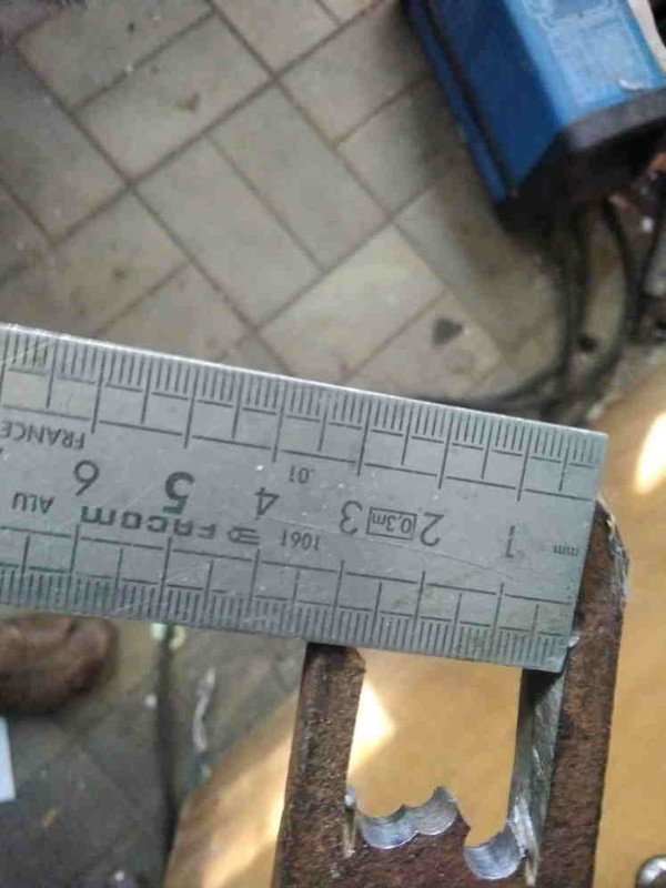 Un vieux morceau de fer plat de 5x40mm que j'attaque à la tronçonneuse et perceuse :
