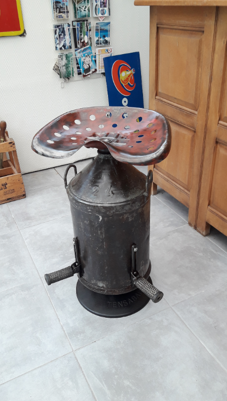 Pour celui la un peu plus compliqué faut un Jerrican ( Anglais pour celui là ) un pied en fonte et un siège de tracteur chiné en brocante , un morceau de tube et deux raccord .
