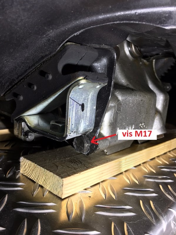 Déboulonnage des 4 vis M17 : un conseil, les deux vis du dessus, pas de soucis, les deux du dessous, il n'y a pas de place, clé à œillet de 17 Facom, c'est top !