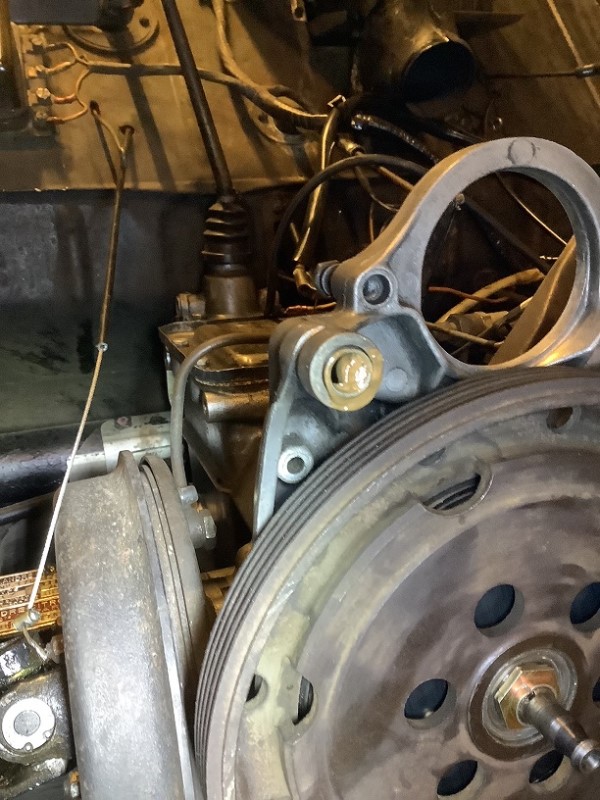 Les dernières photos, divers graissage au niveau des goujons et le roulement à aiguilles du volant moteur, on redresse au maximum la boite de vitesse avec un cric et on connecte !