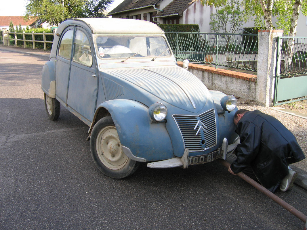Propriétaire d'une 2cv 1955 ressorts apparents depuis plus de 20 ans sans jamais y avoir touché car achat maison à rénover, enfants, études supérieurs.... enfin bref la vie quoi, la belle à attendu gentiment dans divers endroit mais toujours bien à l’abri.