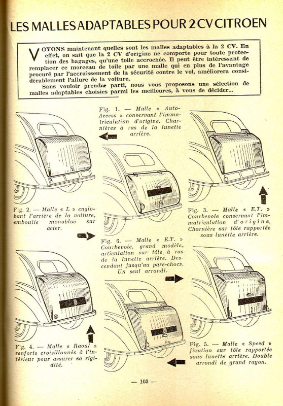 Bref passons, mais je trouve qu'une malle bombée a vraiment un côté rustique qui convient bien à la deuche et compense l'absence d'une capote longue.