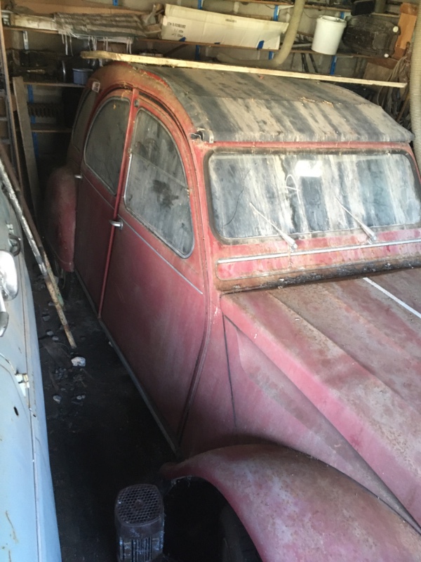 Mon beau père était mécanicien auto et il allait de temps en temps dans les casses auto , et un jour en 1996 suite au "juppette" prime à la casse , il tombe sur cette 2cv Export qui était bonne pour la destruction , alors il dit au mec de la casse qu'il aurait bien voulu la récupérer et 1 semaine plus tard la 2cv était livré.