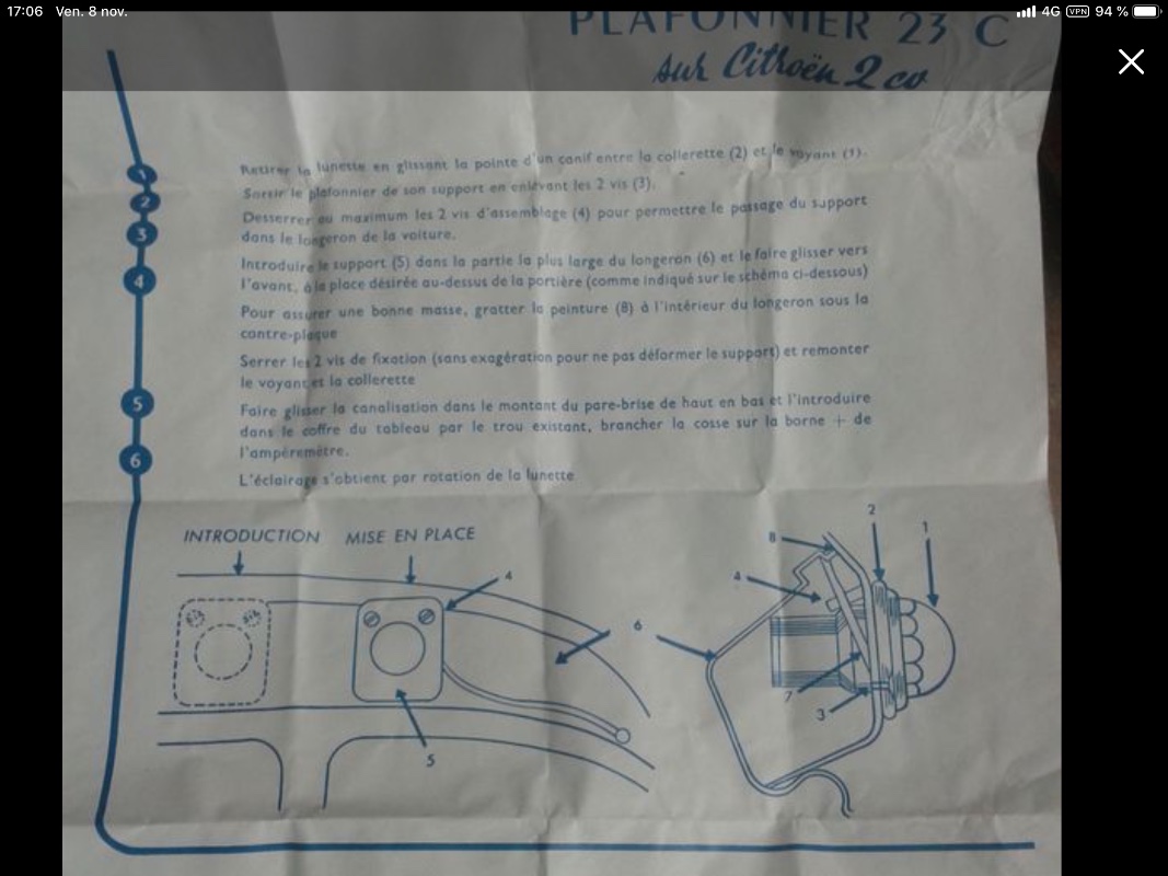 J’avais oublié, pour ton plafonnier……j’ai la notice !louislarénov a écrit : ↑01 févr. 2022, 20:28 (1).jpgJ'avais jamais vu cette lampe dans une deux cv, cela vous parle? Le contact a l'air de se faire par rotation.