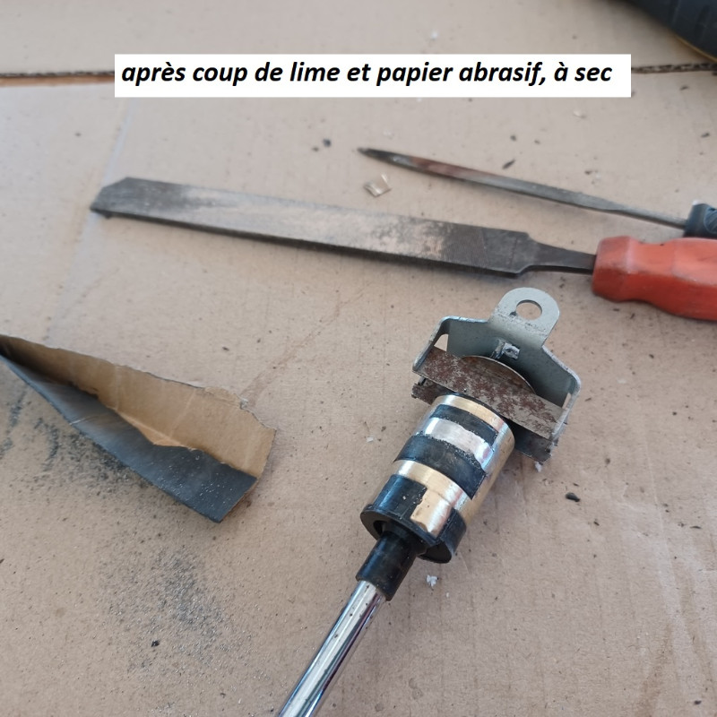 Pas besoin de débrancher les cosses électriques du commodo, juste le séparer de la colonne de direction pour pouvoir dégager la manette et son cylindre cuivré sur lequel on opérera la modif.