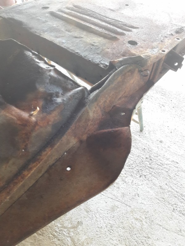 Je vous prie de bien vouloir excuser les "écarts" de langage d'hier. Vous aurez bien compris que je n'en veux absolument pas à mon vendeur, en fait, c'est à ma naïveté que j'en veux. Et comme me dit le soleil de ma vie "il faut arrêter de croire que les gens sont tous comme toi". Ce week-end, je vais pas faire grand-chose sur le châssis, j'ai des amis de 40 ans qui viennent. Le bras de châssis, je pense, a été redressé à l'arrache après le choc, le reste de la plate-forme semble correctement aligné sur les tréteaux qui, c'est vrai, ne sont pas un marbre. La tôle qui compose le bras est, comme vous pouvez le deviner sur les photos, toute chiffonnée. Je réfléchis à l'endroit où je vais couper pour redresser le plus facilement possible. Ensuite, je jouerai du TIG que va me prêter mon copain Yann. Faut que j'apprenne à souder avec cet appareil, je l'ai jamais fait.