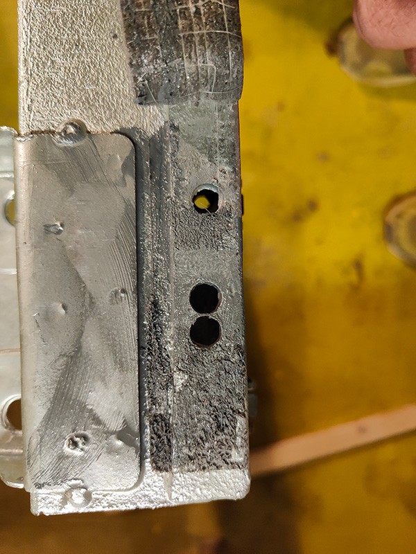 Mais c'était sans compter que sur le nouveau châssis, les trous de fixation arrière (ceux qui se trouvent dans le coffre, juste au dessus de la fixation du pare choc) ne soient pas percé au bon endroit.
