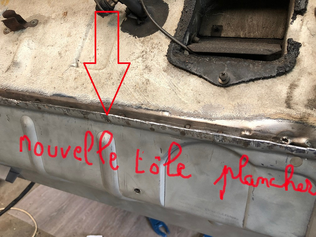 des coup de disqueuses encore , mais cette fois ci elles touchent des renforts (invisible en dessous de la "peau" ) donc soudure MIG et renfort en tole de 1mm maintenue par soudure par point