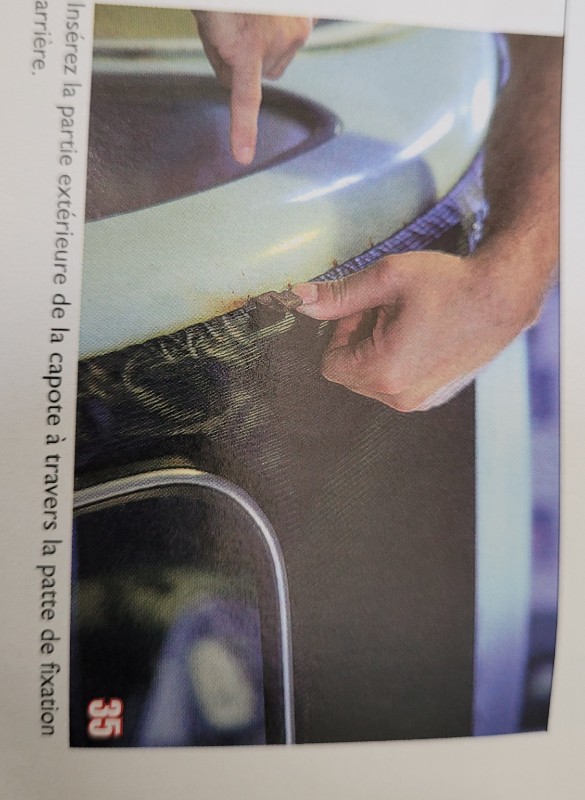 oliviercox a écrit : 22 juin 2022, 20:18 2:Plus embêtant lorsque j'ouvre entièrement la capote, je n'est rien qui la maintiens en place et pourtant, sur les deux montant, a droite et a gauche a l’arrière il y a des trous, dans lesquels un crochet doit forcement aller.