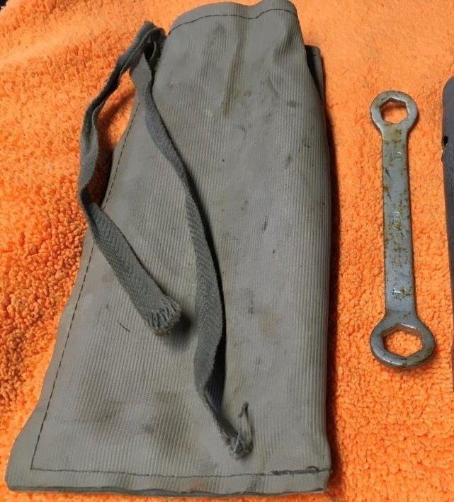 Belle collection d'outils de lot de bord; les deux types de clefs à bougie, les 2 clefs ser, la trousse, la pompe et la pince; il manque le tournevis; petite question, la pince united a-t-elle une lettre de gravée? même en grossissant l'image, je n'ai pas réussi à voir....Je vois aussi que les ser 12/14 sont plus faciles à trouver!