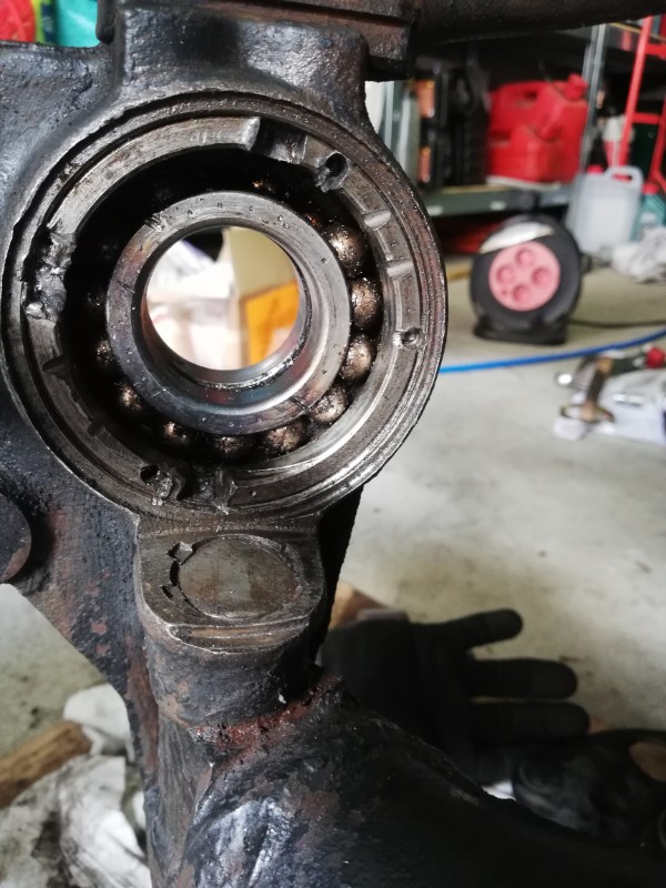 J'ai le même souci avec un peu moins de casse quand même, la bague d'origine n'était pas correctement serrée, et il y avait un jeu de fou la dedans, le roulement en a légèrement brunit.