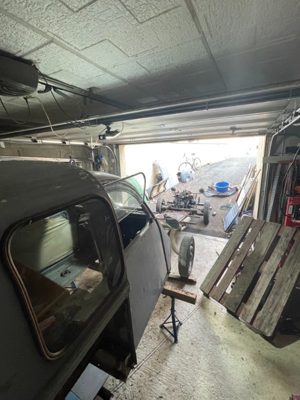 Ce WE n’était pas prévu pour la Deuch’, mais j’ai quand même fait un peu d’avancement pour préparer la dépose du moteur (phare, électricité moteur et par-choc avant).