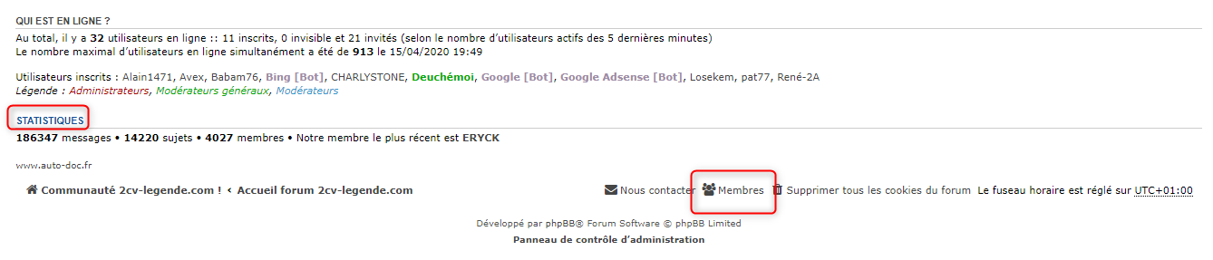 Ces informations tu les a en bas de la page d'accueil du forum :wink: