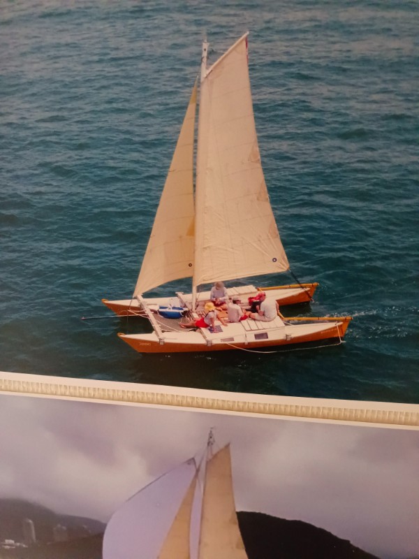 Oui c'est un Wharram... sauf erreur, un Tiki 21. Heu... je n'ai pas très bien compris ce qu'il venait faire là ?