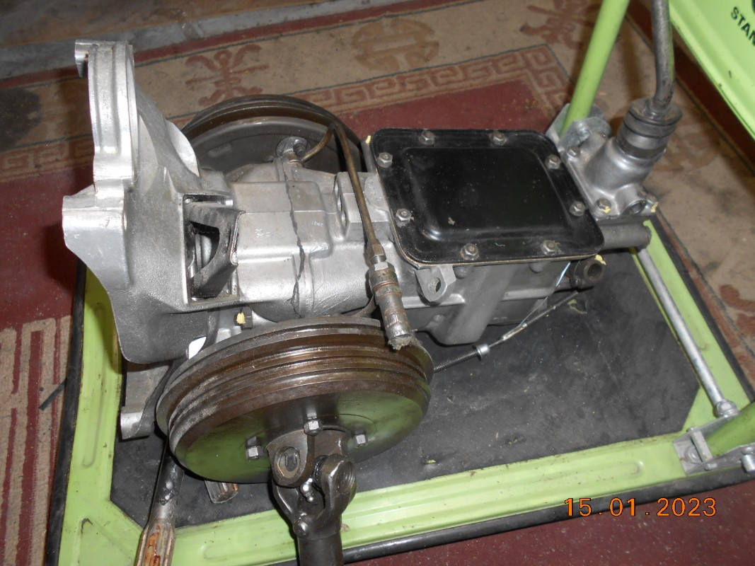 C'est fait !! En fait j'ai enlevé le couvercle de la boite pour le repeindre et... plus d'huile du tout dans la boite !! Alors par précaution et ayant une boite adaptée à l'année (boite dite "taille de guêpe") et révisée, je vais la changer. Par contre il faut que je change les cardans de roues !
