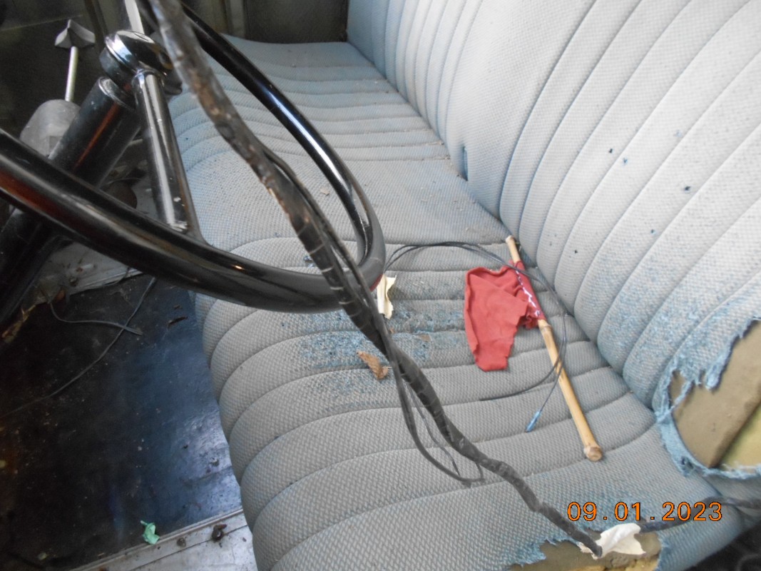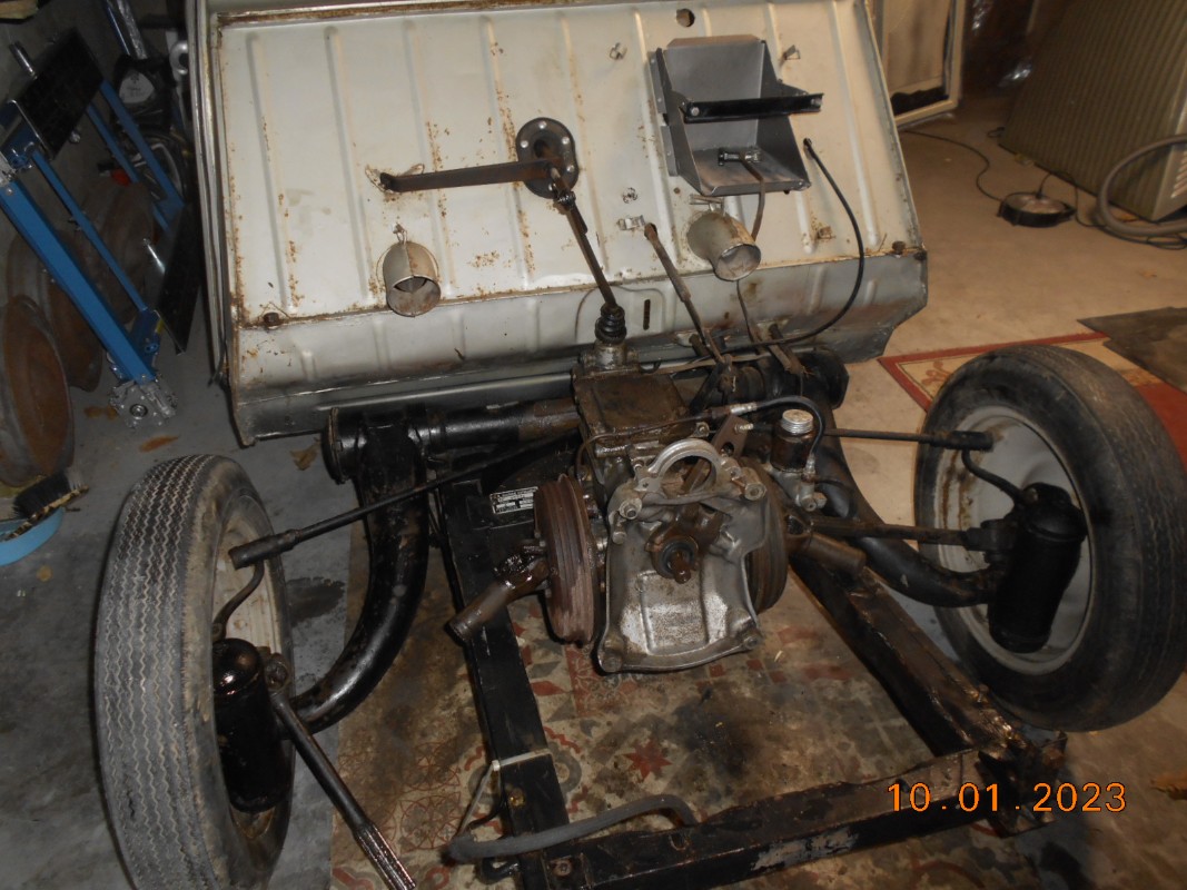 Manquent tous les détails: Rétros d'époque, garnitures de tablette, pare soleil, serrures à coulisseau, panneaux de portes, fermetures de vitres avant, sellerie, tapis de sol, ventilo 8 pales, pompe à essence Guillot, filtre à air Técalemit de 52, boite taille de guêpe, démarreur, double compas de capot, supports soudés sur les ailes, circuit électrique, phares d'époque, goulottes de chauffage, la liste est longue...