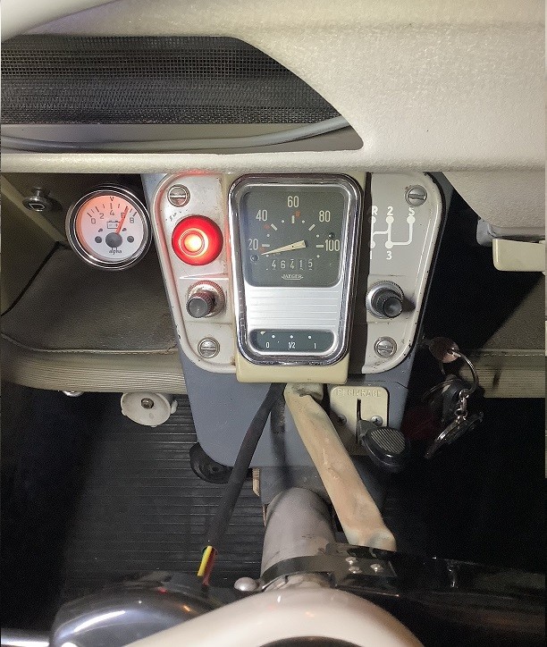 Sur la deuxième sortie j'ai branché un voyant rouge sur le côté gauche du tableau de bord. Un de plus avec le voltmètre, le coupe circuit et la tirette d'amorçage de la pompe à essence !