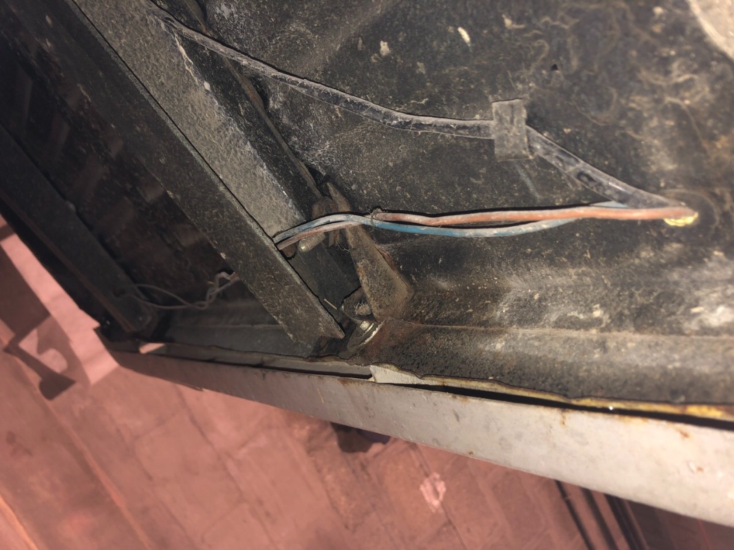 Ici, il y a un écart entre le renfort et le bas de la jupe, ce qui fait qu'au moindre choc, la jupe plie. Elle a été d'ailleurs bidouillée au mastic...
