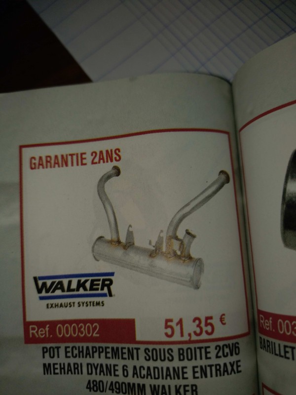 La bonne mesure entre les 2 entré du tube d'échappement est 486 mm,ces côte je viens de les voir sur Oscaro la marque du pot est Asso Marmitte, pour 2cv6 de 1980 à 1990,tu peux aller voir sur le site Oscaro