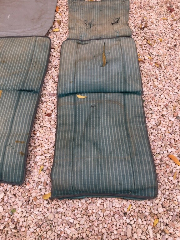 je souhaite me rapprocher le plus possible du montage qui a été fait a l'origine et pour cela il faut que je rajoute aux garnitures que j'ai reçu et qui se trouve sur la pièce de tissus un dos afin d’être comme la garniture qui ce trouve au premier plan .le tissus flash un peu mais la par contre je n'ai pas eu le choix . les revendeurs n'ont qu'un seul vert et le sellier que je suis allé voir en amont n'as pas trouver mieux (c'est même lui qui m'as conseillé de prendre avec les revendeurs car lui au rapport qualité/prix il ne pouvait pas s'aligner !!)