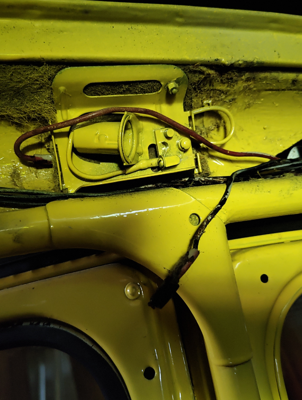 J'ai trouvé en enlevant la feutrine de ma 2cv, et avant de la remplacer, un plafonnier qui a été repeint avec la caisse par le précédent propriétaire.