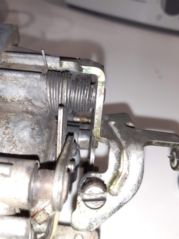 Quand je regarde sur l'axe, il y a deux ressorts autour de l'axe. L'un fait son office mais. le second le plus à droite sur la photo et le plus éloigné du carburateur semble libre et n'imprime aucune force de rappel. Normal ou est il cassé?