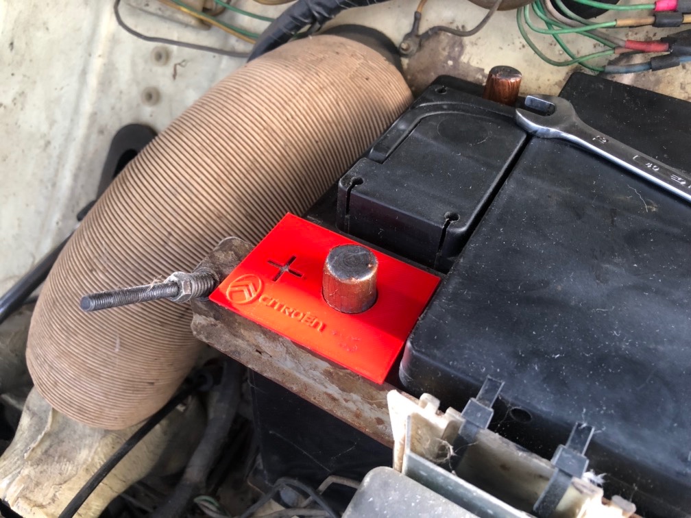 Une protection de la cosse + de la batterie (car la barre de maintien n'est pas très loin de la cosse +) :