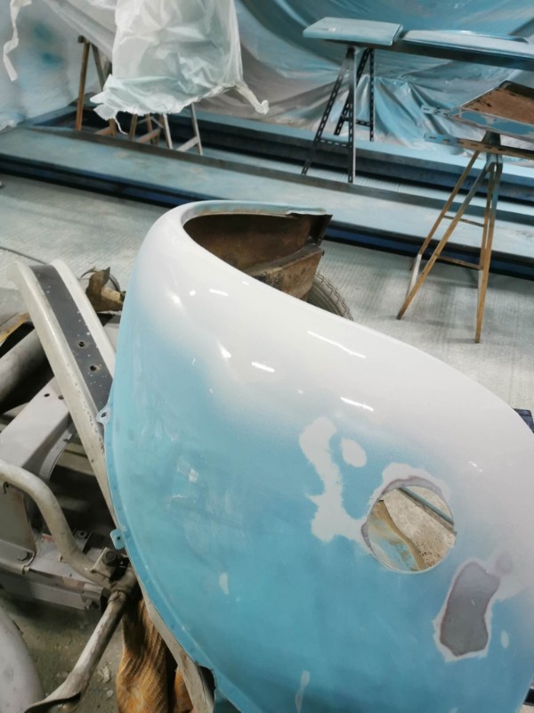 reste plus que les 2 ailes avant cabossé et sablage des intérieurs . le capot qui a un trou et un gros choc sous la plaque immatriculation . le volet d'air a refaire quelle petits trous .les 2 coques de phare . les joues d'ailes avant et âpres fini le bleu je vous met ca en photos suivant les étapes bien sur