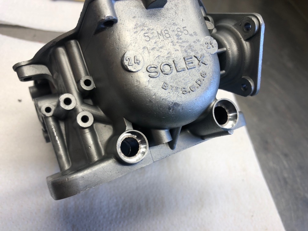 Il est arrivé démonté et avec des pièces détachées ! Un 26/35, né le 5 novembre 1968, code 11985, et fabriqué de Nov 1968 à 1972. Il a les oreilles de Mickey mais n'a plus l'Econostat dans la buse 2 corps alors que l'emplacement du gicleur, l'orifice dans le fond de cuve sont présents