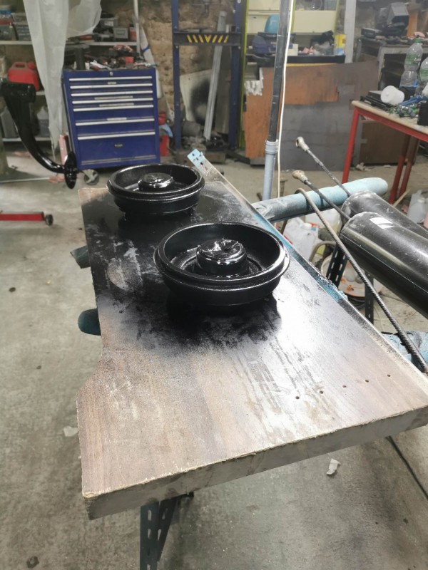 nettoyage de l 'essieu arrière complet du la traverse arrière et des tambour ponçage peinture et 2 eme couche sur le dessous du châssis