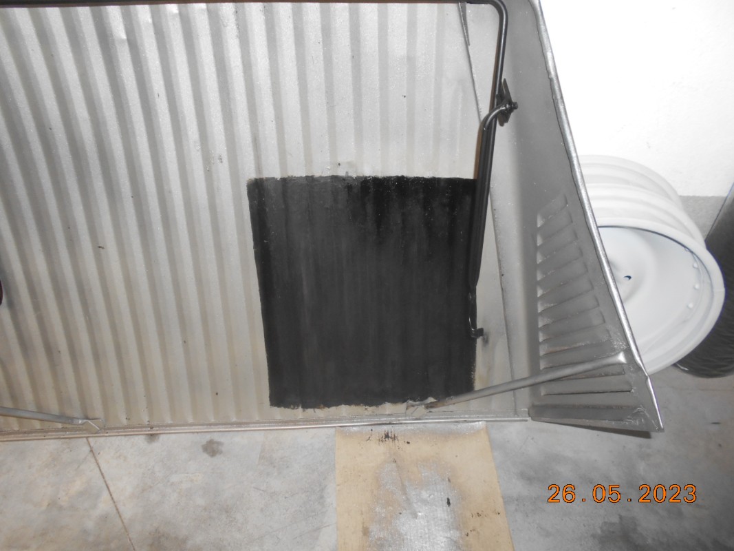 J'ai donc refait la peinture de l'intérieur du capot avec sa couche de bitume de protection...