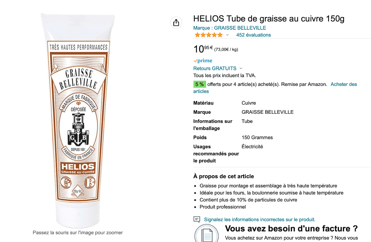 PS : je te conseille d'avoir dans tes fournitures, de la graisse au cuivre (Amazon, 11 euros) :