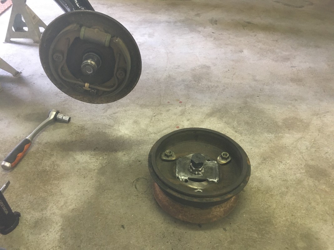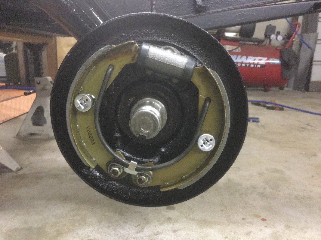 les freins arrière sont déposés et remplacés par du neuf , les flasques ont été brossé et férosé , les tambours sont à la rectification .