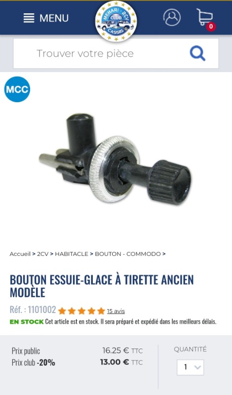 Le bouton pour les essuies glaces de chez mcc, je l'avais vu. Mais le liens est à 4 cosses.